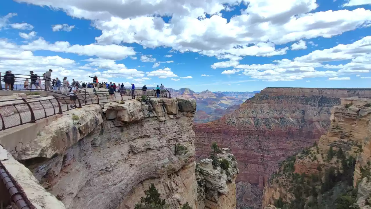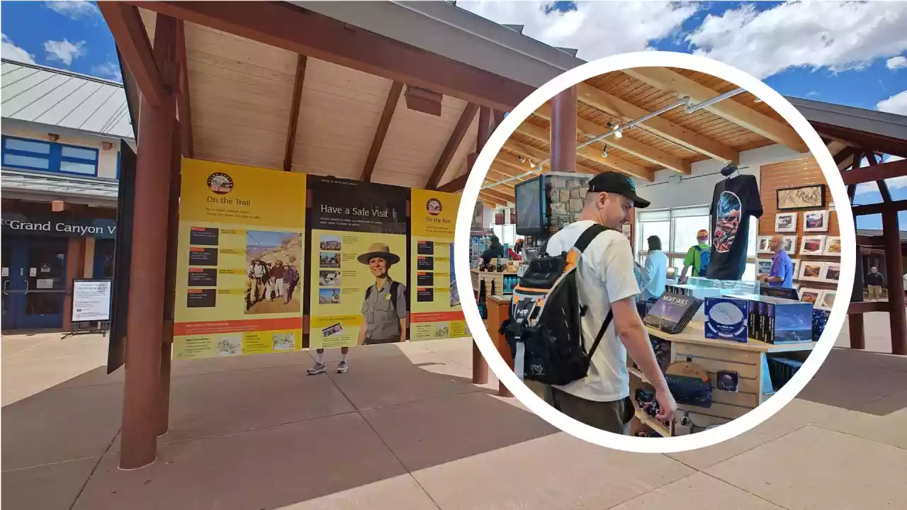 Znajduje się tu wypożyczalnia rowerów, wystawy, kawiarnie, sklep z pamiątkami i oczywiście sympatyczni Park Rangers, którzy z pasją opowiadają o historii tego miejsca. Stąd już tylko kilka minut spaceru dzieli od dwóch znanych punktów widokowych: Mather Point i Yavapai Point, połączonych malowniczym szlakiem Rim Trail.