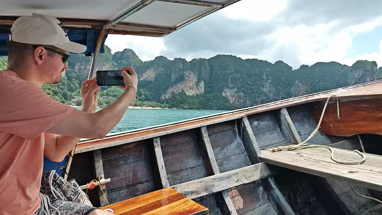 Logistyka jest niezwykle prosta. Wystarczy namierzyć w Ao Nang jedną z budek z szyldem „Longtail Boat Tickets” i wyłożyć na ladę równowartość około 12 zł za bilet, dla jednej osoby w jedną stronę. Obsługa błyskawicznie skieruje Was do konkretnej łodzi i zanim się obejrzycie, będziecie już na wodzie. Sama podróż trwa raptem 15 minut, ale to wystarczy, by poczuć się jak na planie „Parku Jurajskiego”.
