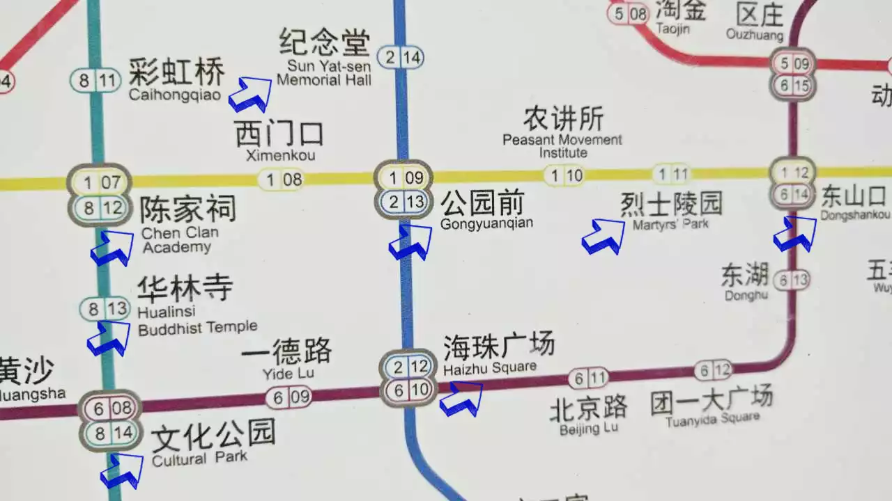 Gdy mamy już informację o tych podstawowych liniach, będziemy mogli dojechać do każdego dworca kolejowego, dworca autobusowego i na lotnisko. Ponadto dotrzemy do kilku ciekawych miejsc metropolii, jak np. zabytkowe centrum w Dongshankou, Świątyni Przodków Klanu Chen, centrum finansowego czy Canton Tower.