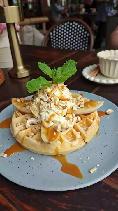 W kawiarni See You Soon Cafe, na werandzie spróbowaliśmy deseru nieco mniej tajskiego, ale bardzo popularnego - puszystych gofrów z bananami, bitą śmietaną i nerkowcami, bo Chiang Mai to stolica nowoczesnych deserów i nie musicie się bać eksperymentów - zostały one już przetestowane na setkach tysięcy podróżników.