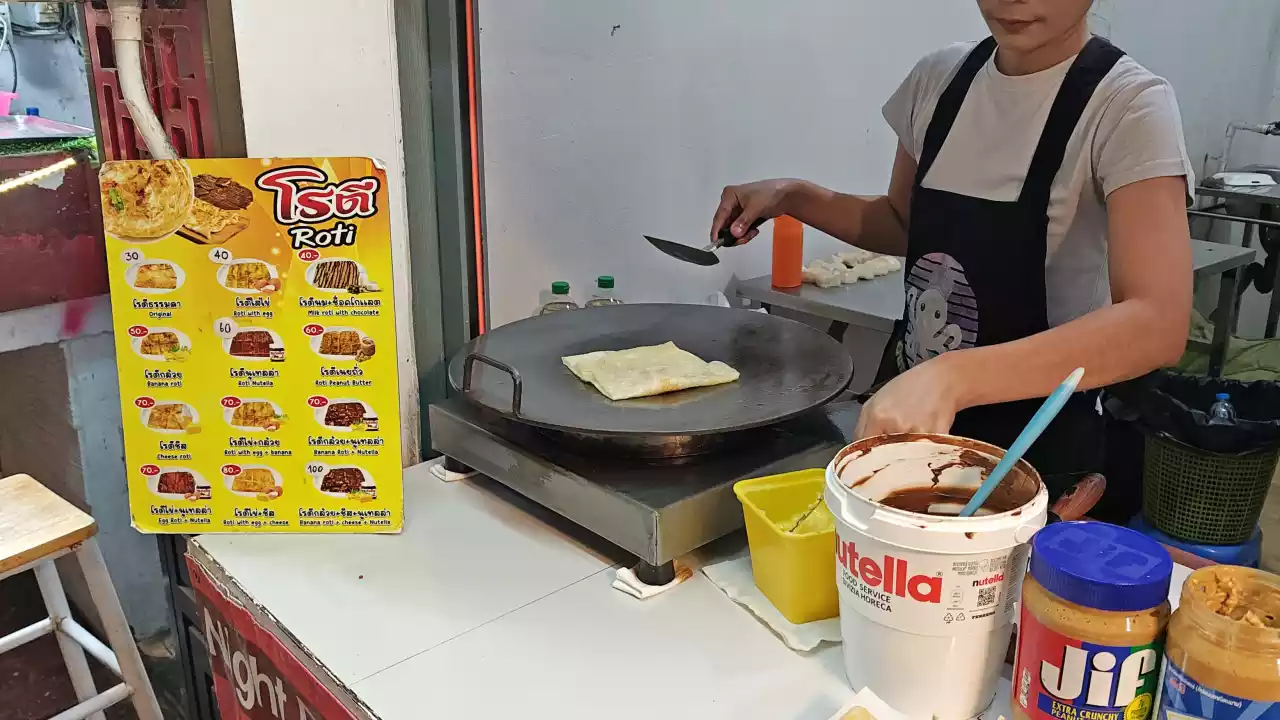 Obserwowanie mistrzów Roti przy pracy to czysta elegancja - cieniutkie ciasto wypełniane jest różnymi owocami, a następnie składa się je w idealną kopertę. Postawiliśmy na klasyczne wersje z mango, bananami i Nutellą, bo to najlepszy sposób na zakończenie dnia.