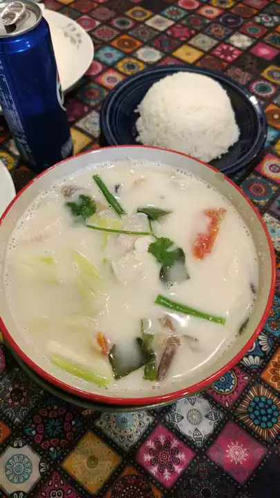 Biała jak mleko, delikatna i niezwykle aromatyczna zupa Tom Kha Gai kryje w sobie moc galangalu, trawy cytrynowej i liści limonki kaffir. To idealna alternatywa dla ostrej Tom Yum. Zupa jest kremowa w konsystencji, a pachnie jak tajski ogród.
