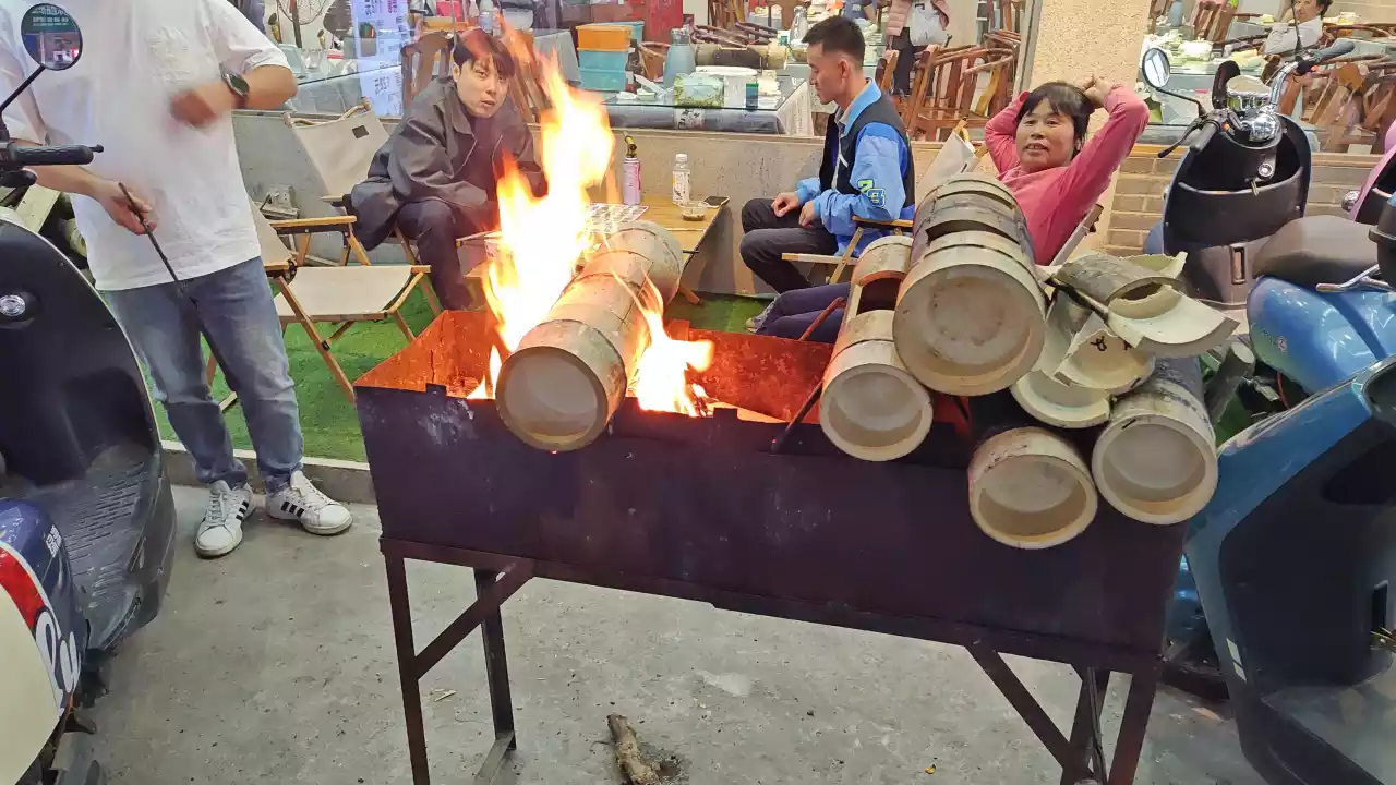 Dlatego wieczorem daliśmy szansę kolejnej potrawie. Znaleźliśmy zhútǒng fàn, czyli małe rurki, w których gotowano kleisty ryż, parujący i pachnący dymem nabiera aromatu bambusa. Czasem podaje się go owiniętego liściem, co dodatkowo dodaje smaku i aromatu.