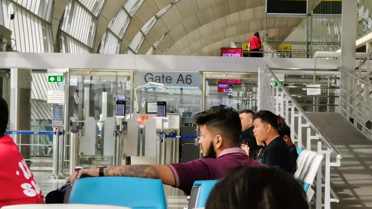 Bramki lotniskowe w Bangkoku to coś więcej niż stanowisko obsługi i wyjście do samolotu. Na tym lotnisku stanowią wydzieloną przestrzeń, do której z głównego korytarza schodzi się specjalnymi schodami.