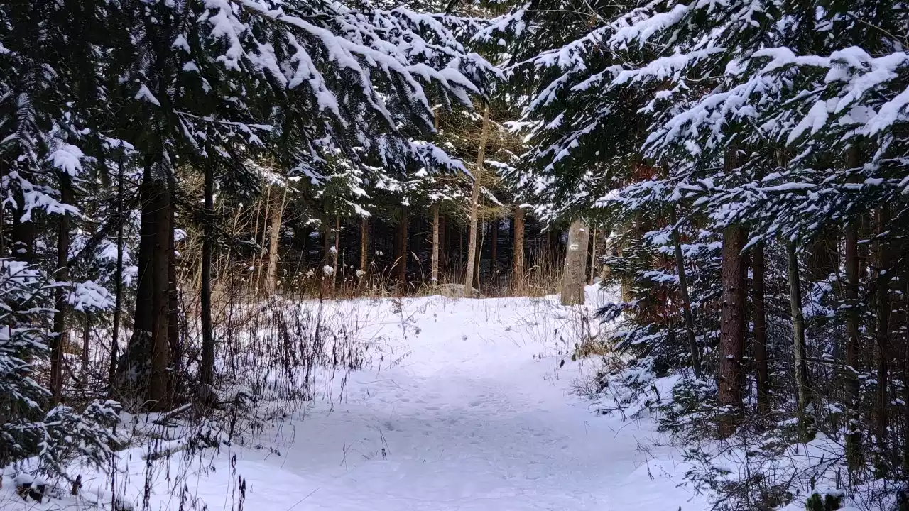 Tuż za granicami Jeleniej Góry zmieniliśmy szlak na żółty, wchodząc w objęcia Borowego Jaru. To wyjątkowy odcinek trasy, bo zimą okolica nabiera surowego, wręcz bajkowego charakteru.